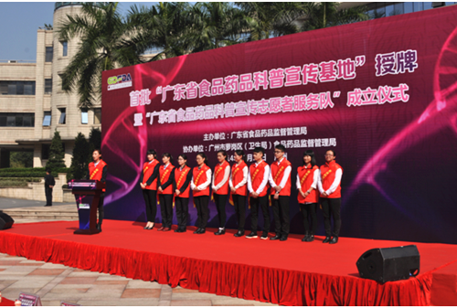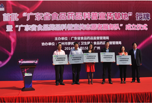 2014年11月15日,首批“广东省食品药品科普宣传基地”授牌暨“广东省食品药品科普宣传志愿服务队”成立仪式在广州市萝岗区举行。广东省食品药品监督管理局副局长黄绍龙出席仪式,为首批获得“广东省食品药品科普宣传基地”的单位授牌致辞。省食品药品监督管理局机关和直属单位、广州市萝岗区政府、广州市萝岗区卫生局(食品药品监督管理局)相关负责同志,广东食品药品生产企业代表、志愿者、新闻媒体记者及社会公众共100余人参加了活动。